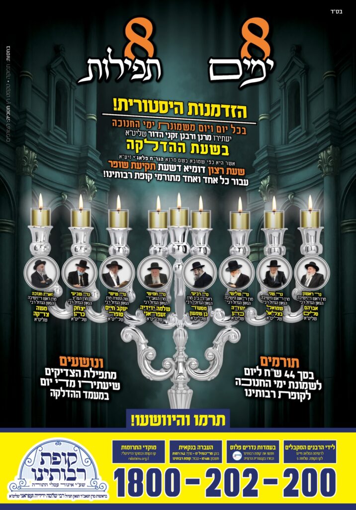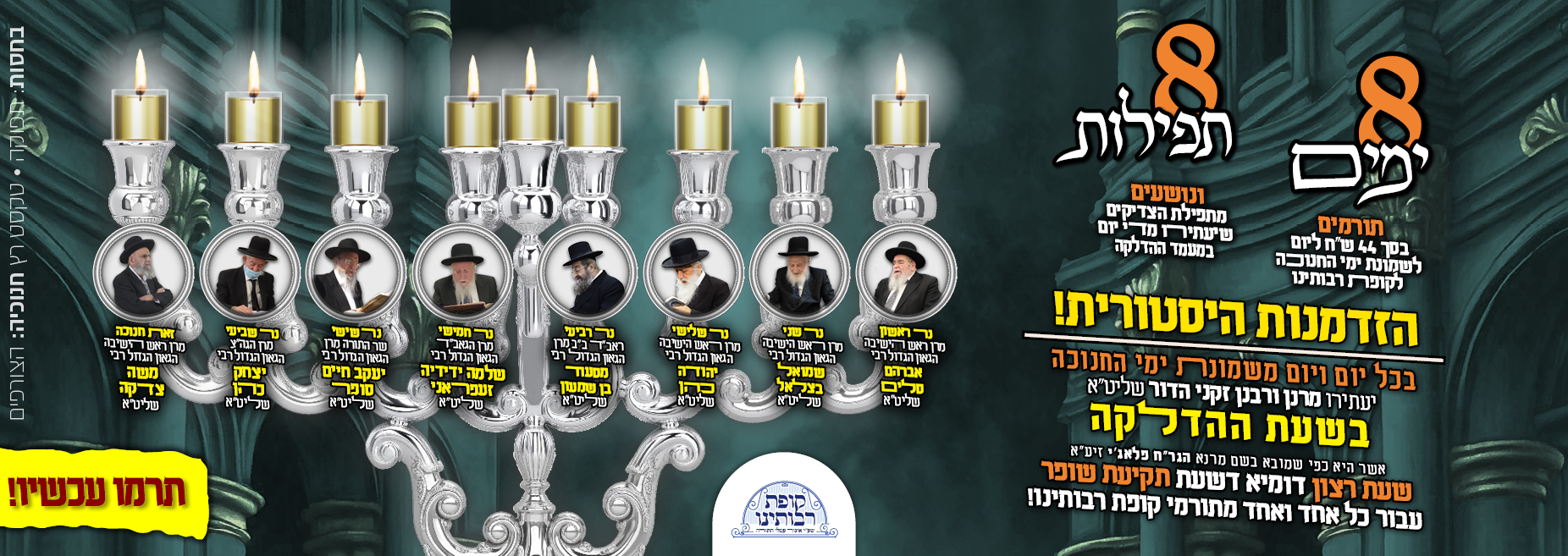 בסך 44 ש"ח ליום לשמונת ימי החנוכה לקופת רבותינו